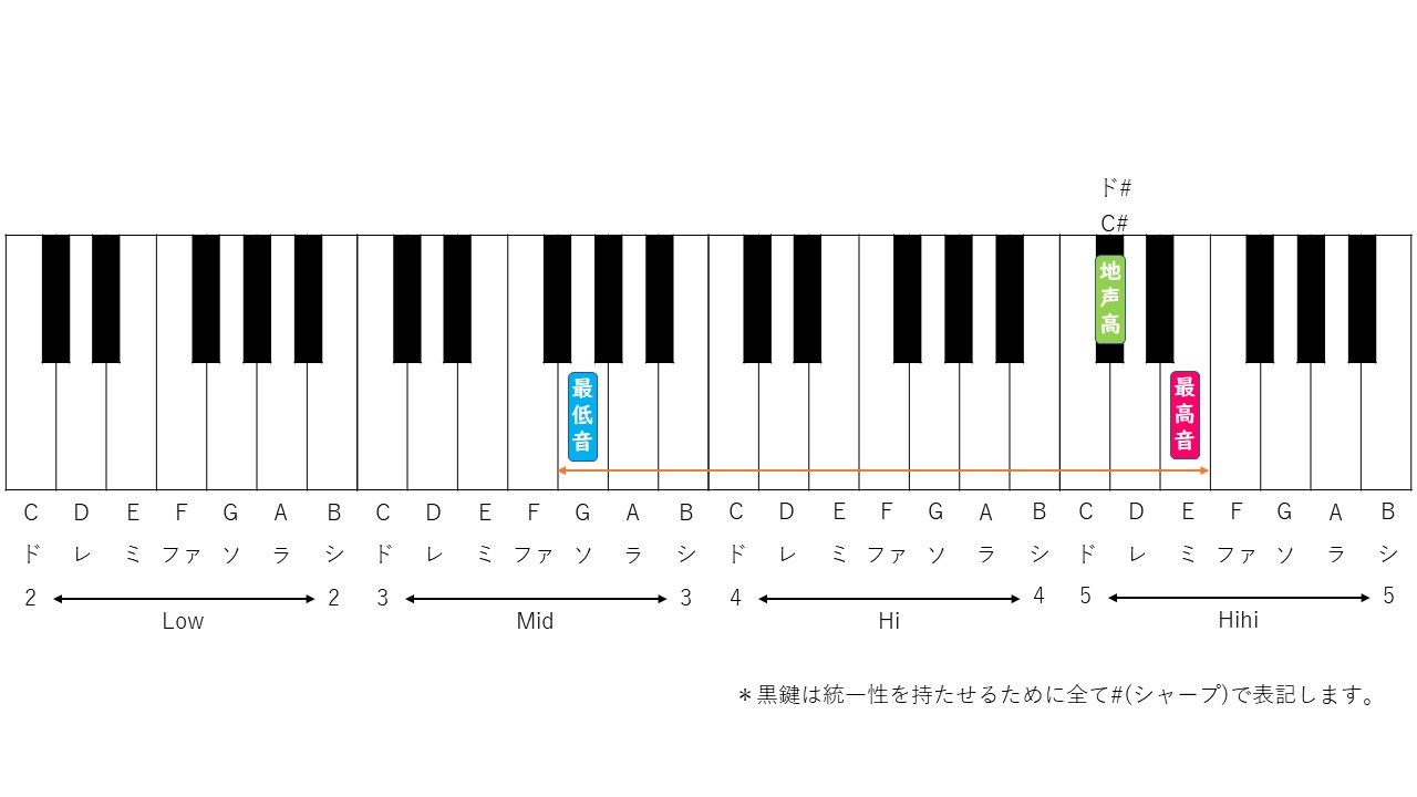 ・Aメ2@低:G3(ソ)~高:B4(シ)