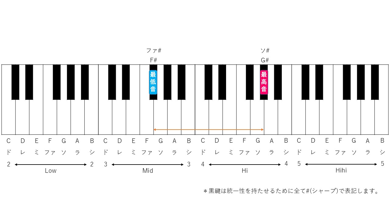 F#3(ソのシャープ)~G#4(ソのシャープ)