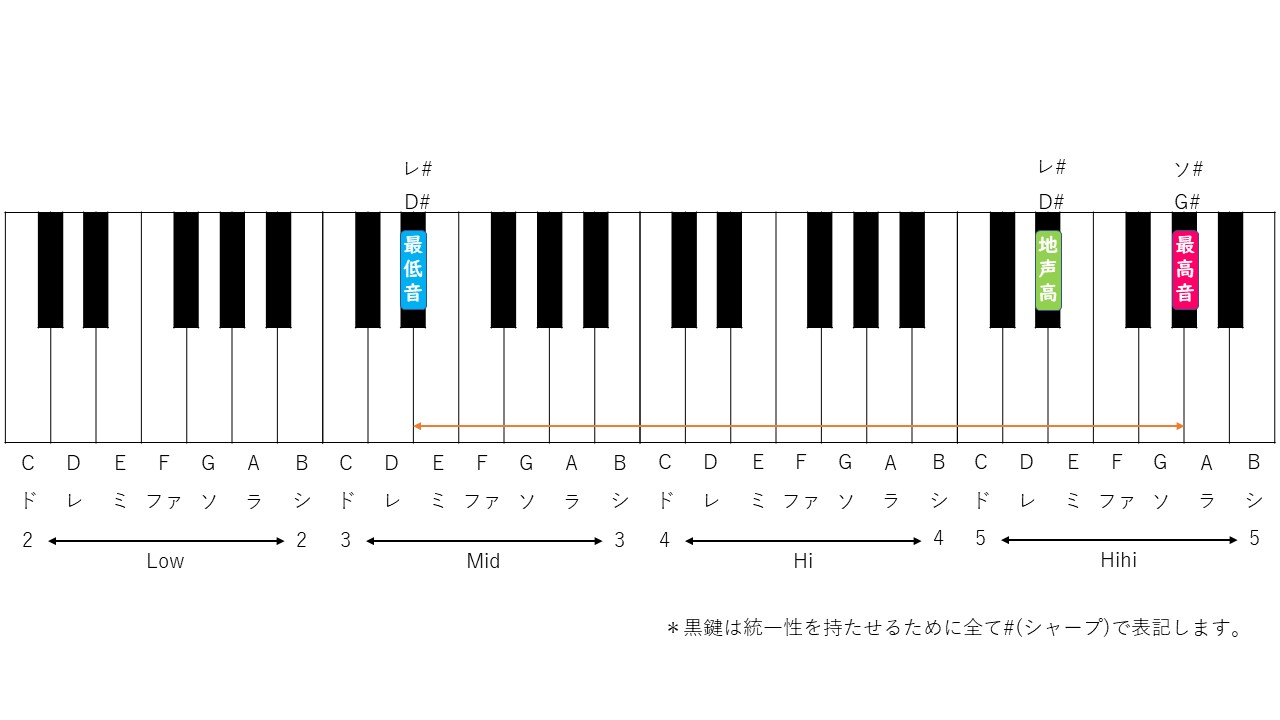 D#3(レのシャープ)~G#5(ソのシャープ)